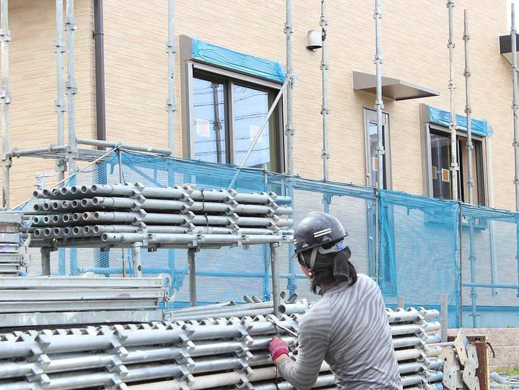 解体工事では、足場の仮設養生がつきものです。弊社では仮設資材及びとび職人も自社で抱えております。責任をもって高品質の工事をお届けいたします。